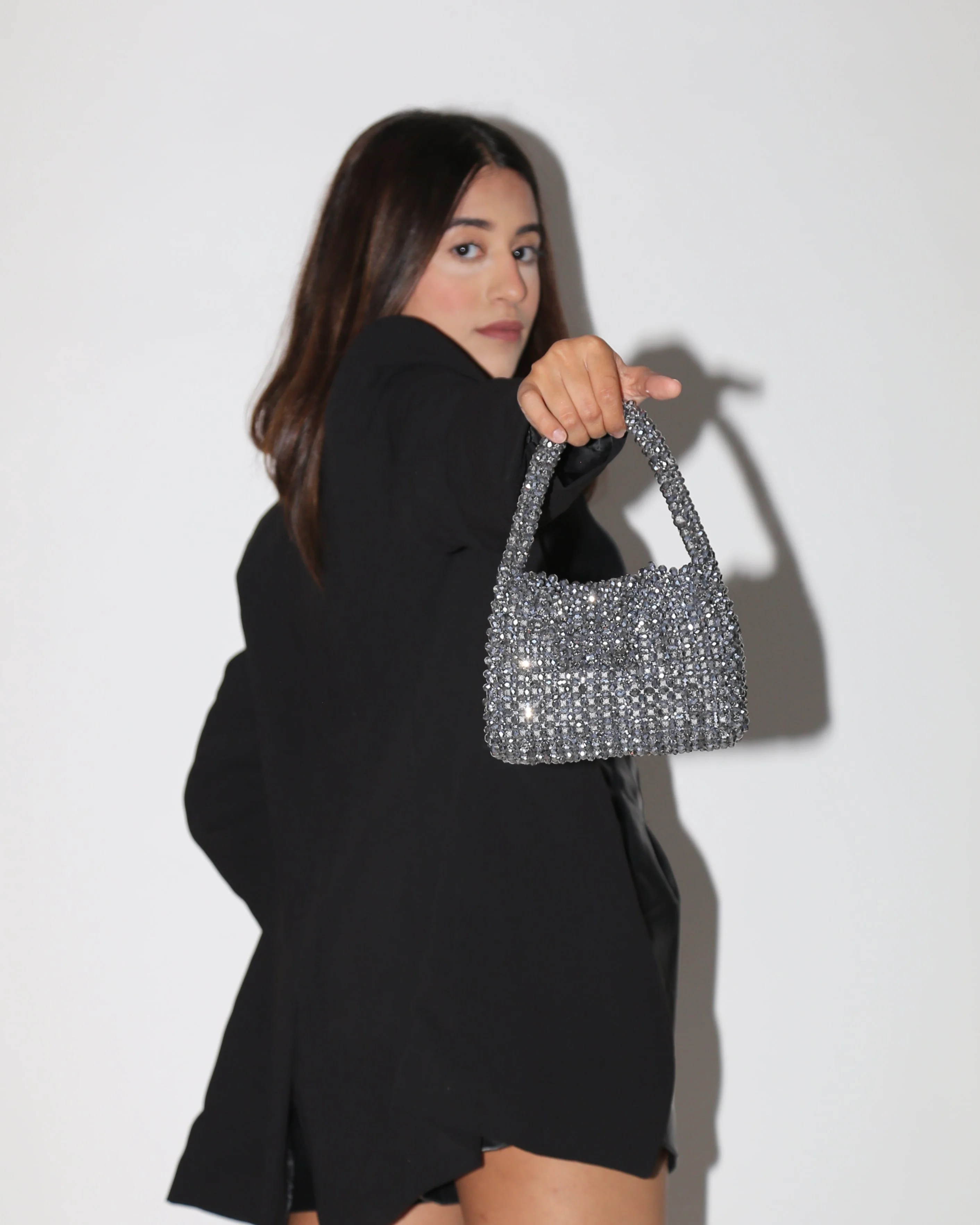 ICON 10" Silver Crystal Beaded Bag