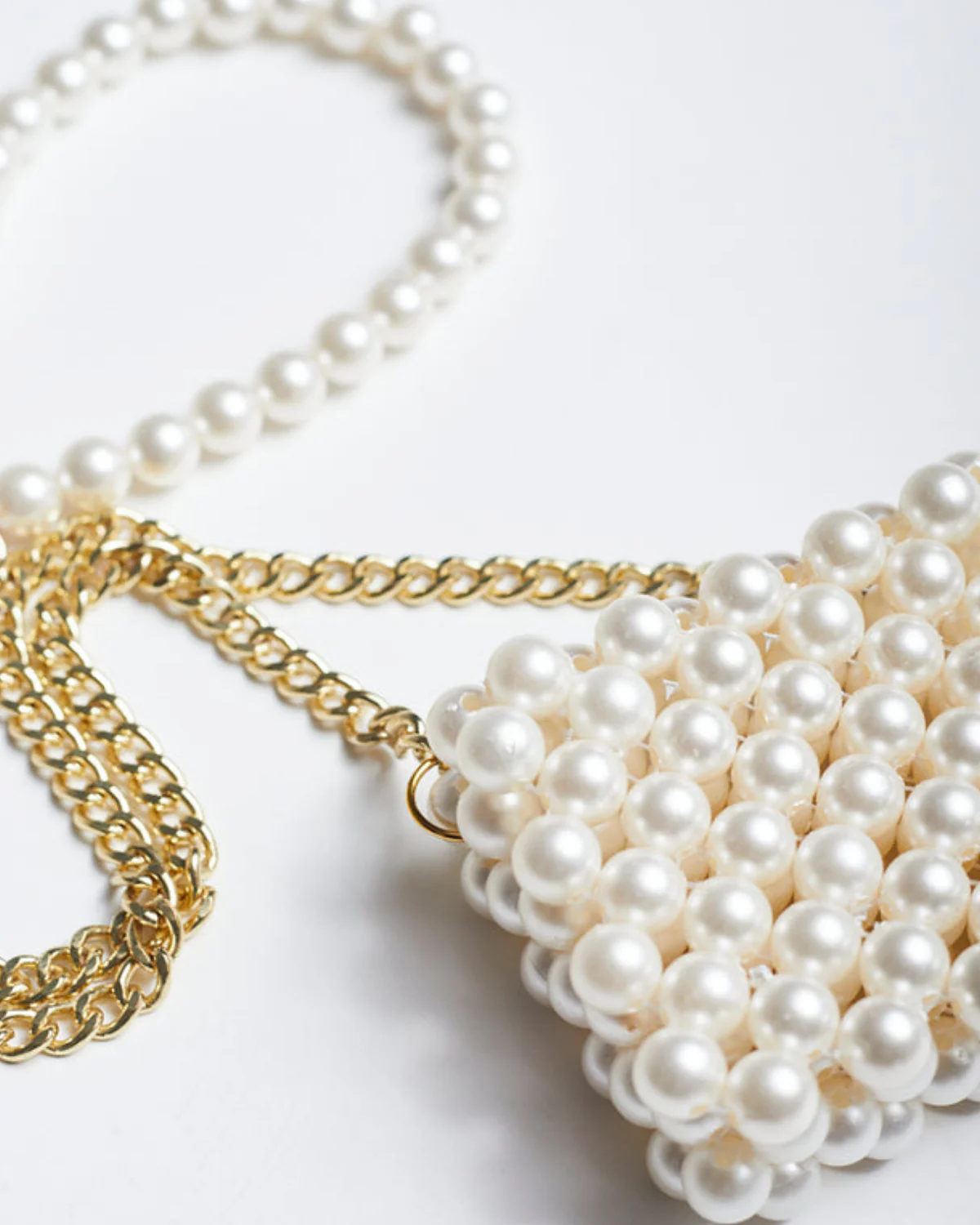 The Mystery Bag is a statement-sized mini that does more than just look good. Crafted with pearl beads and finished with a mix of gold-tone chain and pearl strap, it effortlessly shifts from waist bag to crossbody or chest sling. Whether youāre styling it over a blazer or keeping it casual, this piece brings the perfect mix of polish and play.